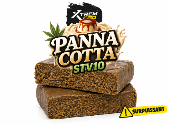 La Panna Cotta STV10 est une résine de cannabis élaborée à partir de matières premières rigoureusement sélectionnées pour leurs qualités botaniques et leur richesse en cannabinoïdes.